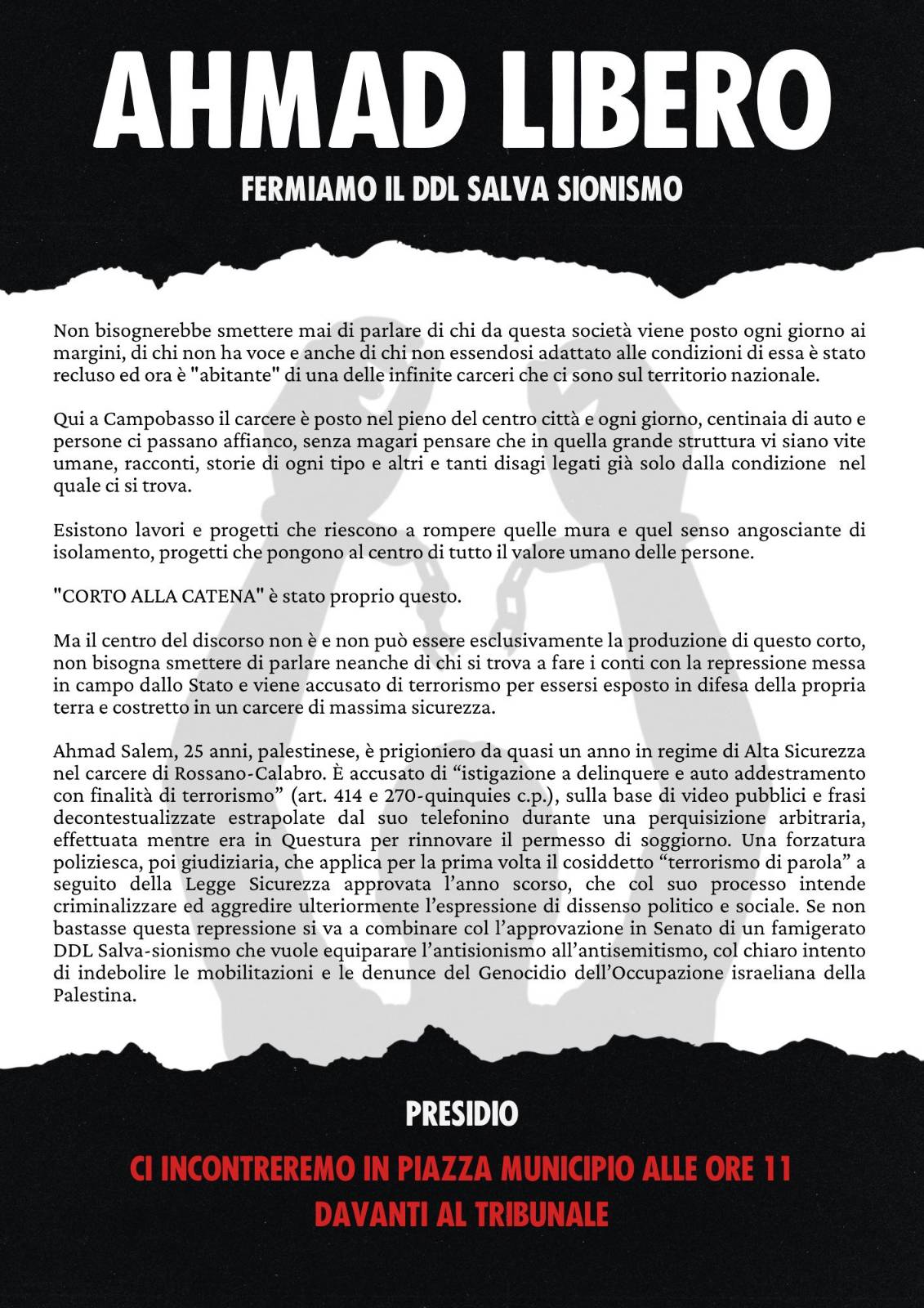 Campobasso, 14 aprile: Giornata di mobilitazione per il processo ad Ahmad Salem
